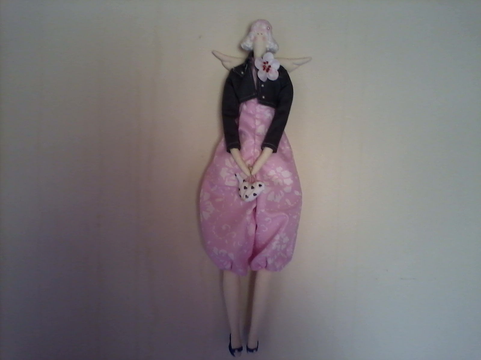 Costure um pedaço de fita de cetim dobrada ao meio nas costas da tilda para poder pendurá-la.